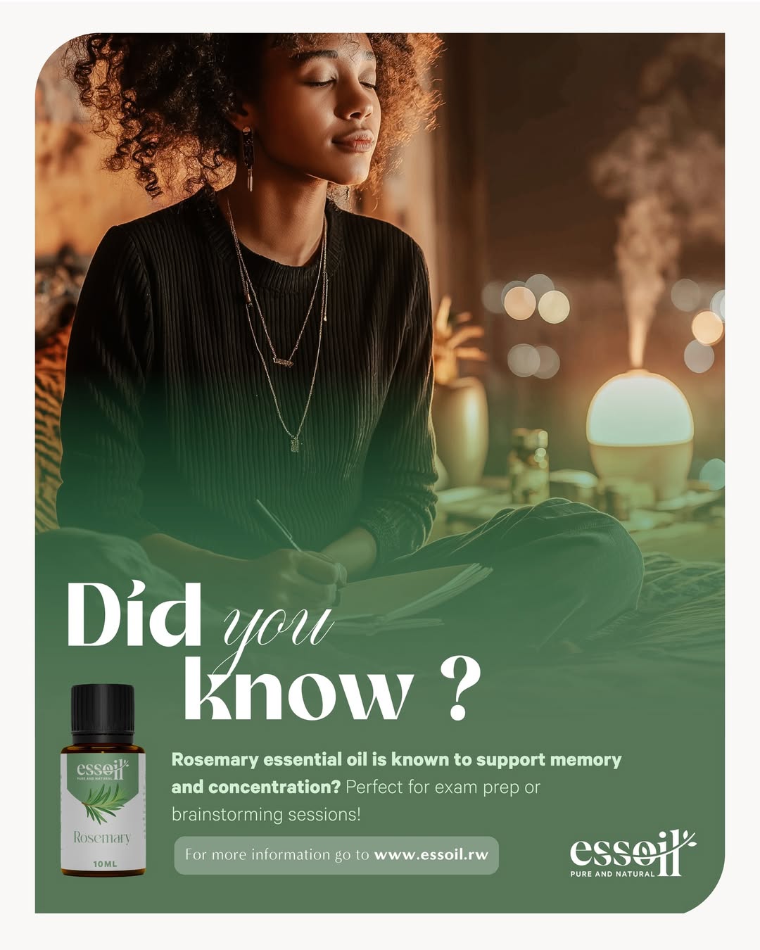 The Essential Oils Rwanda campaign promotes pure, locally sourced wellness oils, highlighting their natural benefits for health, relaxation, and daily life through storytelling, strong visuals, and community focused initiatives that build trust and awareness.